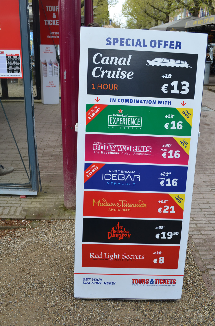 Não se assuste com esses valores. Amsterdam é uma cidade que por si só já é a atração máxima. Se não quiser gastar, basta andar e andar pela cidade. Você ficará satisfeito com certeza.