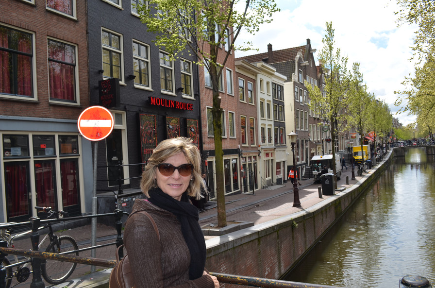 Depois dos museus fomos a pé para o Distrito da Luz Vermelha. Foi  a pior parte da cidade. Uma decepção! Achei até deprimente. Afinal, é muito triste ver aquelas moças se exporem daquela maneira. Mas, estávamos em Amsterdam e não podíamos perder a oportunidade de conhecer este bairro tão famoso. Praticamente ele se reduz a uma avenida em que o canal passa ao meio e o cheiro de maconha é bem intenso. Tem as atrações relacionadas ao bairro e turistas por todo lado. Evite fotografar as moças nas vitrines. Elas não gostam.