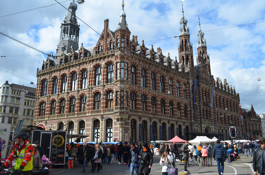 A cidade é também a capital cultural do país. Cheguei em Amsterdam vindo de Bruxelas de trem, paguei 29 euros.  Desci no Schiphol Airport  https://www.schiphol.nl/en/ e imediatamente entrei no metrô. Tinha um funcionário na estação orientando as pessoas para embarcarem. Ao embarcar no metrô estranhei as pessoas, estavam todas de algum adereço na cor laranja e a maioria já meio alterado por ingerir bebidas. Desci na estação central de Amsterdam, https://www.gvb.nl/ aí a coisa foi pior. Uma multidão de roupas laranjadas e todo mundo na rua. Perguntei a algumas pessoas o que estava acontecendo e me falaram que era o maior   feriado da Holanda. O dia do Rei, dia do aniversário do rei Willem-Alexander. Antes era o dia da Rainha, mas em 2013 ela renunciou em prol de seu filho. A festa não tem nada de desfile, bandas marciais ou coisas deste tipo. Na verdade é uma comemoração nas ruas. Os holandeses saem para as ruas e canais comemorando  e neste mesmo dia ocorre em vários locais a Vrijmarkt, quando todo mundo põe as suas bugigangas na calçada e faz um bazar coletivo.